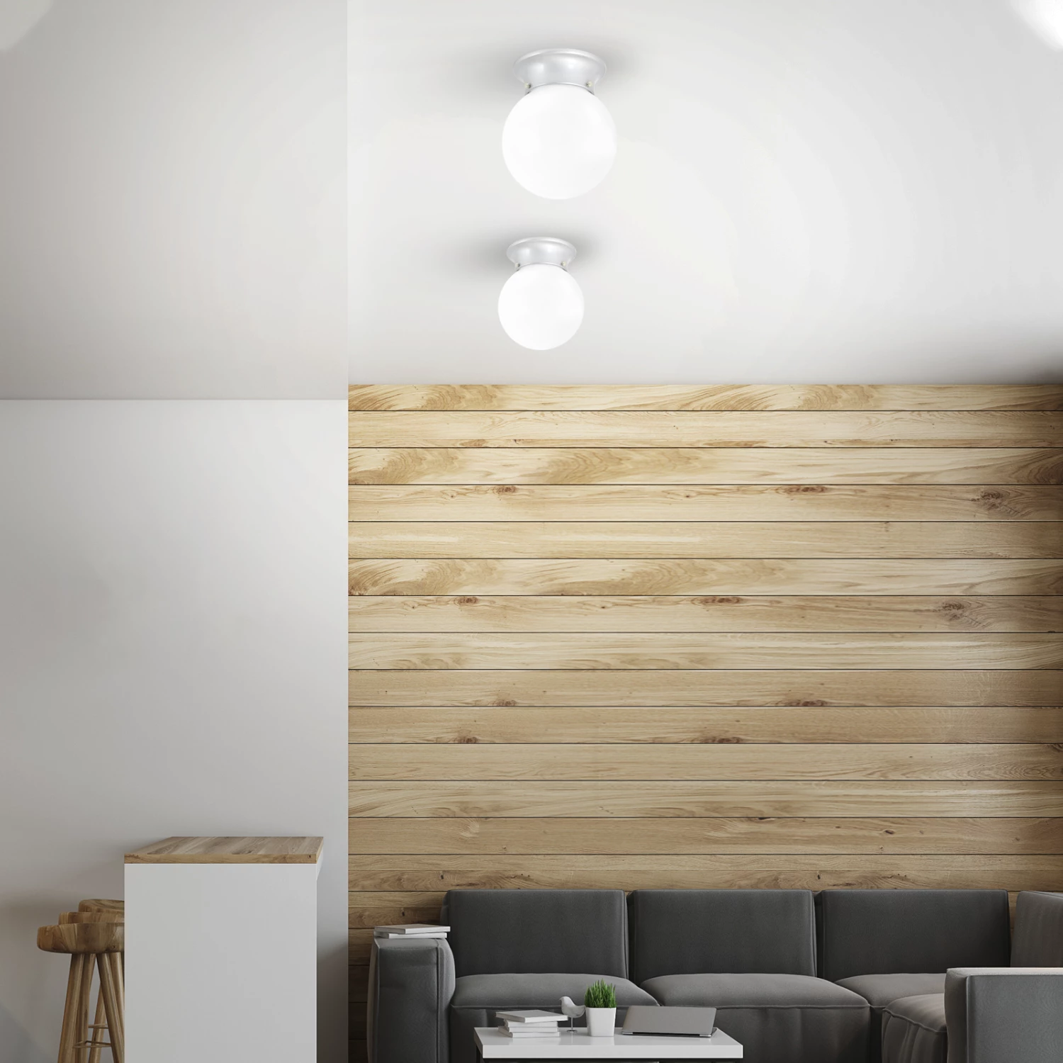 - White opal glass shade and maximum 40W globe suggested