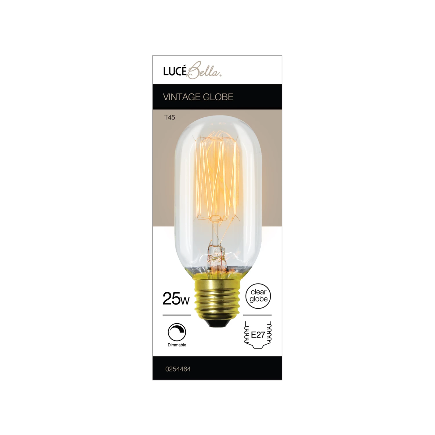 Light up your home with the Luce Bella T45 E27 25W Vintage Globe. This decorative globe has a vintage appearance that will bring warmth to any room of the home.This globe can be used to create a focal point and to enrich the design element of your fitting