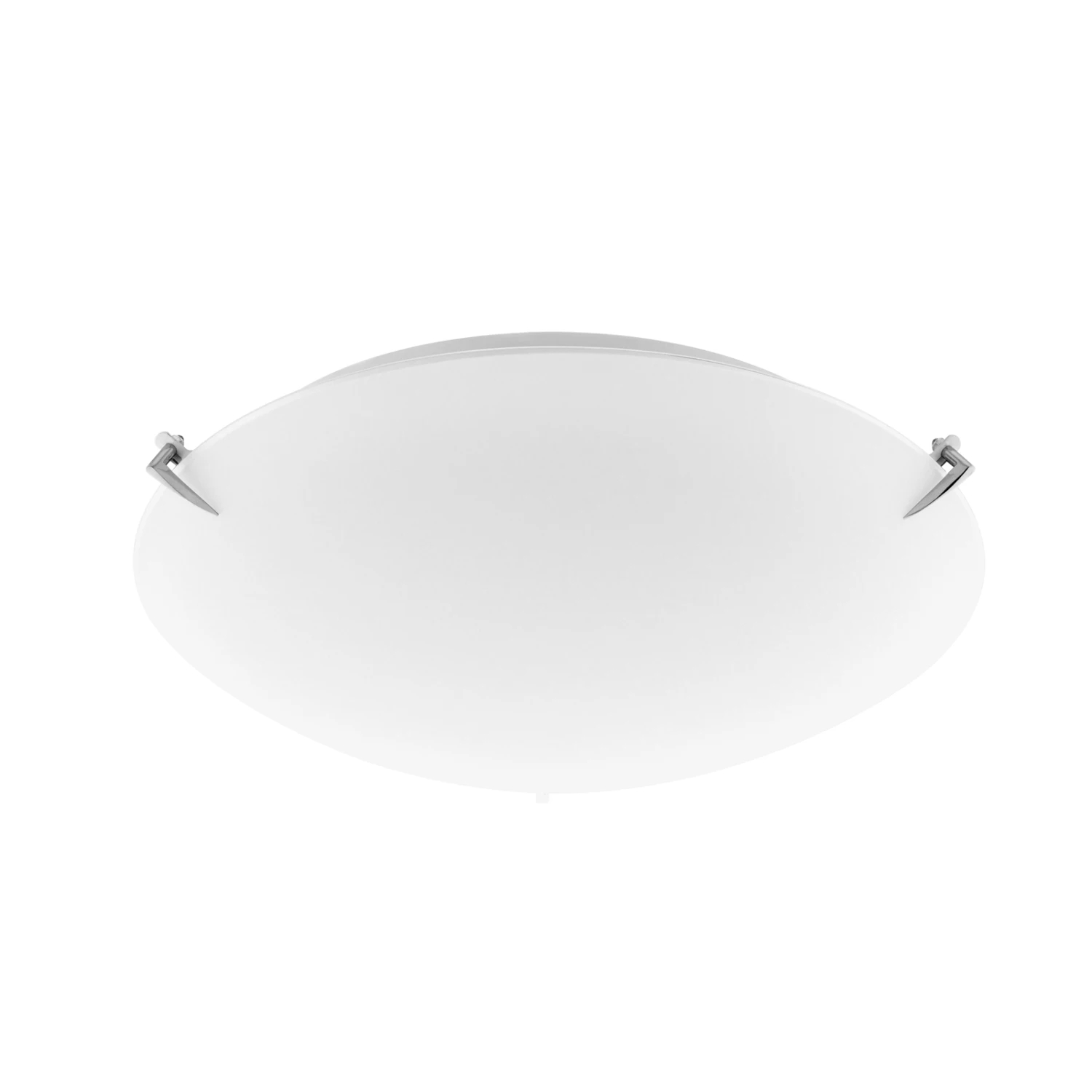 This Luce Bella 40cm ceiling light is a flush mount fitting with a stylish design. It features a frosted white glass shade and chrome accent clips.