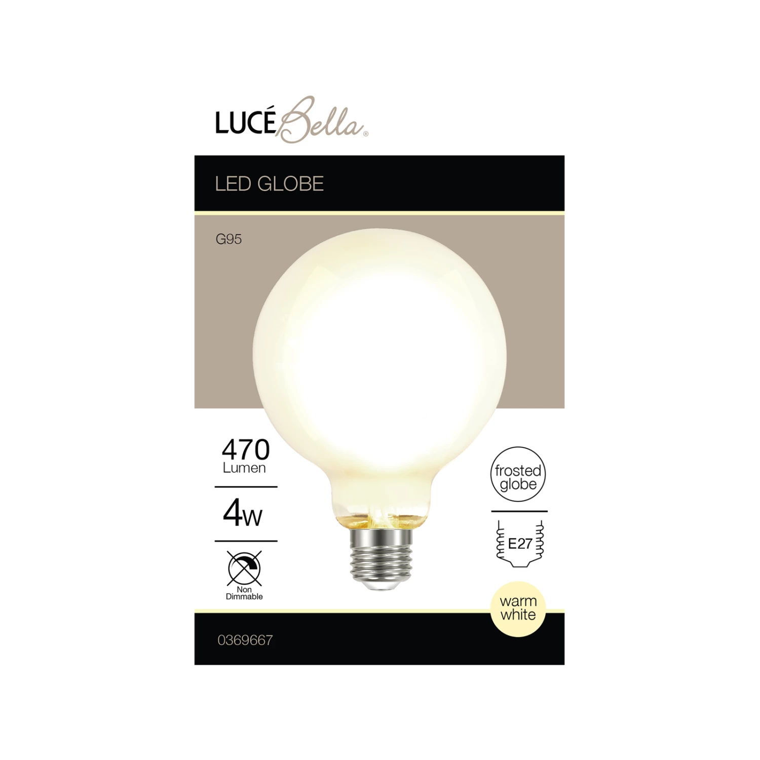 The Luce Bella G95 E27 LED 470 Lumen Warm White 4W Globe, perfect for creating a warm and cosy feel in any room.