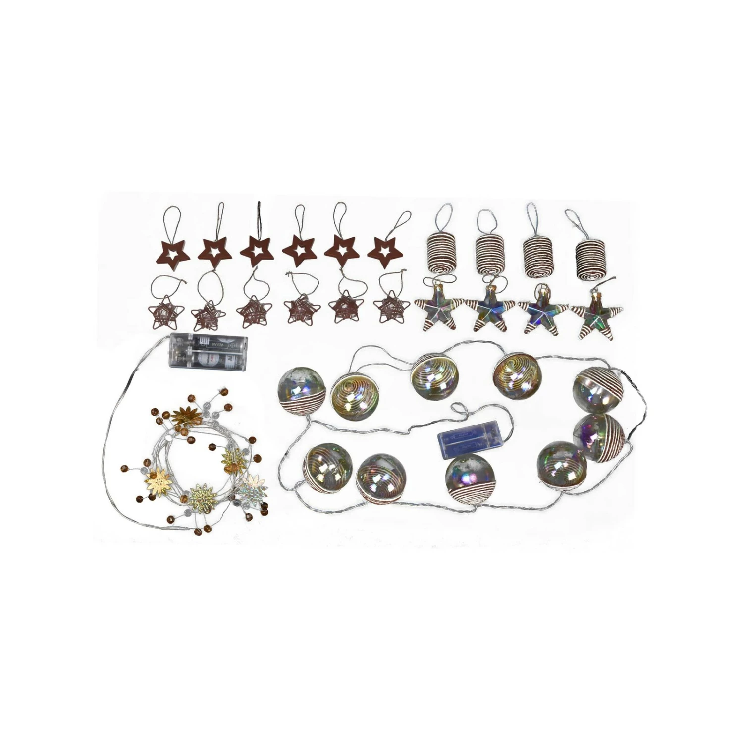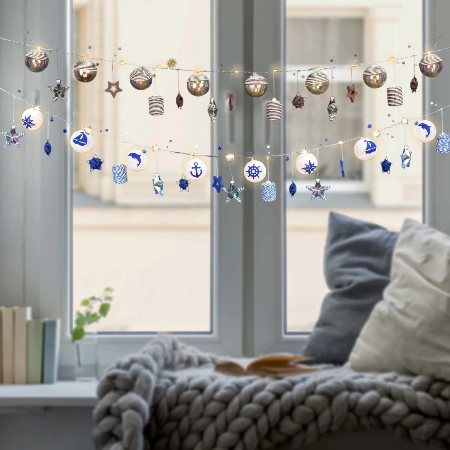 - Each pack includes: 20 x hanging ornaments, 20 pack copper wire LED string lights, 10 pack cotton ball LED string lights