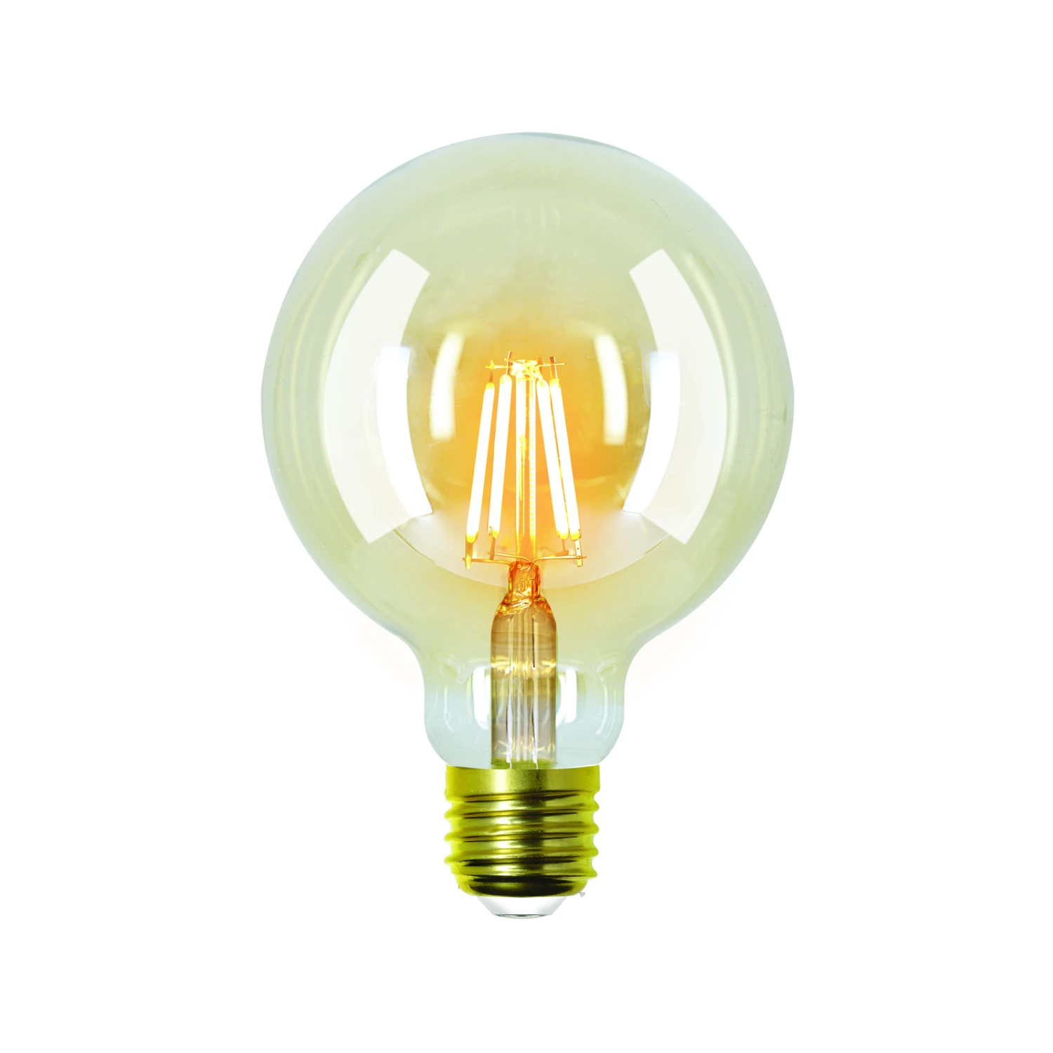 Light up your home with the Luce Bella G95 E27 LED Amber 400 Lumen Warm White 4W Globe. This decorative globe brings warmth to any room of the home.This bulb has a colour temperature of 2700K, providing you with a warm, tranquil atmosphere, and the Amber coloured glass provides a very cozy light